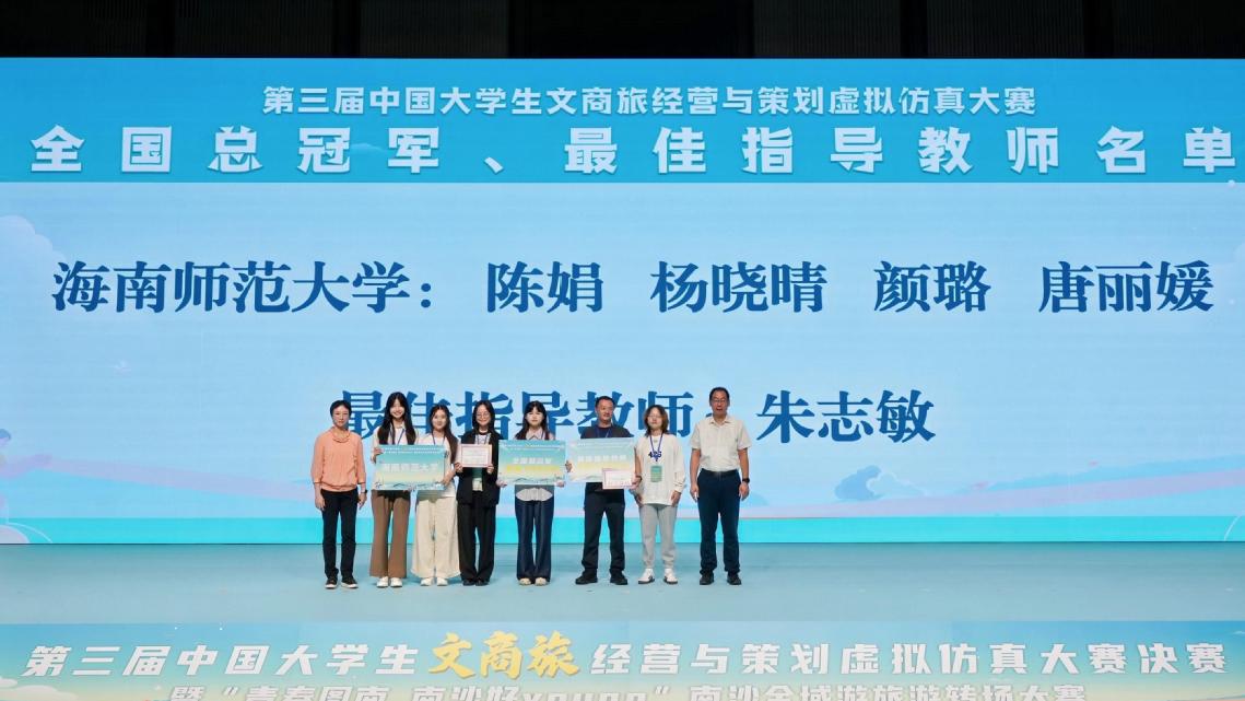 8月19日至24日,第三届中国大学生文商旅经营与策划虚拟仿真大赛决赛在广州南沙区举行。由我校旅游学院朱志敏老师指导的陈娟、杨晓晴、颜璐、唐丽媛团队斩获全国总冠军;郑丛慧、叶文来、庞雯倩、符碧婉团队荣获全国二等奖;朱志敏获评“最佳指导教师”“优秀指导教师”称号,实现我校在该项赛事中的新突破。