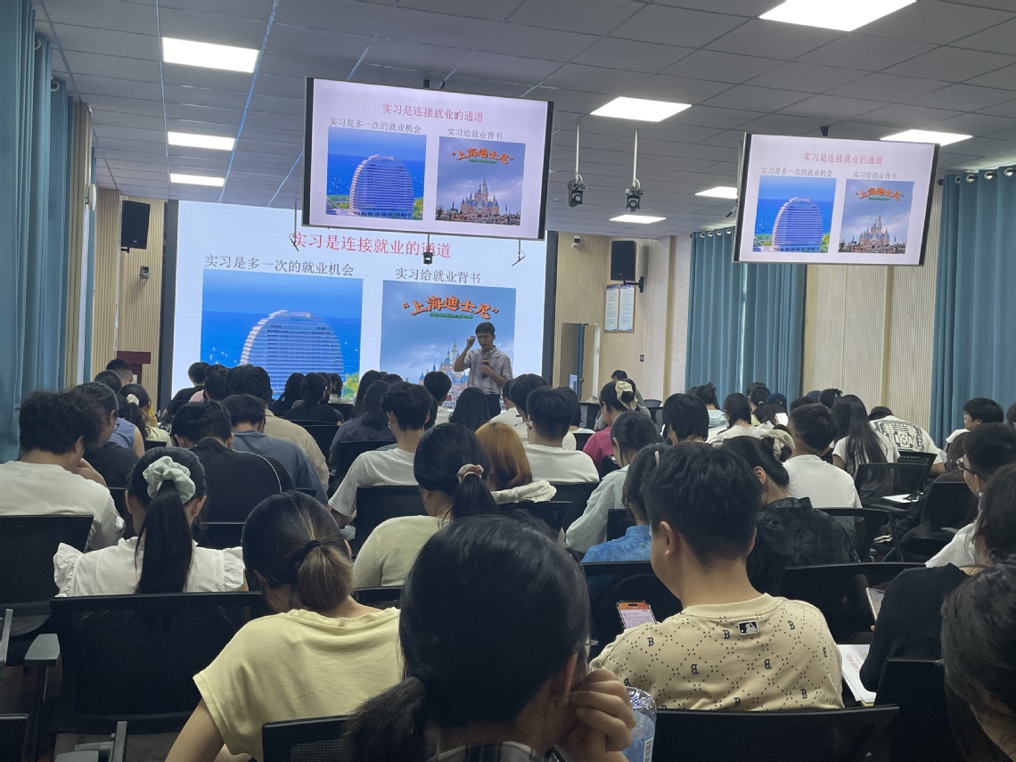 首先,赵志峰副院长作实习动员讲话。他以“旅眼看世界”为题,强调旅游不仅仅是理论,更是世界观和方法论,深刻阐释了实习的意义:实习既是连接学业与就业的“通道”,是将理论知识应用于实践的宝贵机会;也是加速认识社会、发现职业机遇的“窗口”。他强调“实习是多一次就业机会,实习为就业背书”。在实习策略上,赵志峰建议同学们选择大型企业,以接触丰富资源、开阔行业眼界;鼓励大家积极参加集体实习。他还提出,可将实习单位作为调研对象,撰写调查报告,以此提升认知的深度与专业性。在岗位尝试方面,他勉励同学们“不被定义”,主动尝试一些不擅长甚至陌生的岗位,勇于突破自我设限,探索更多职业可能性。