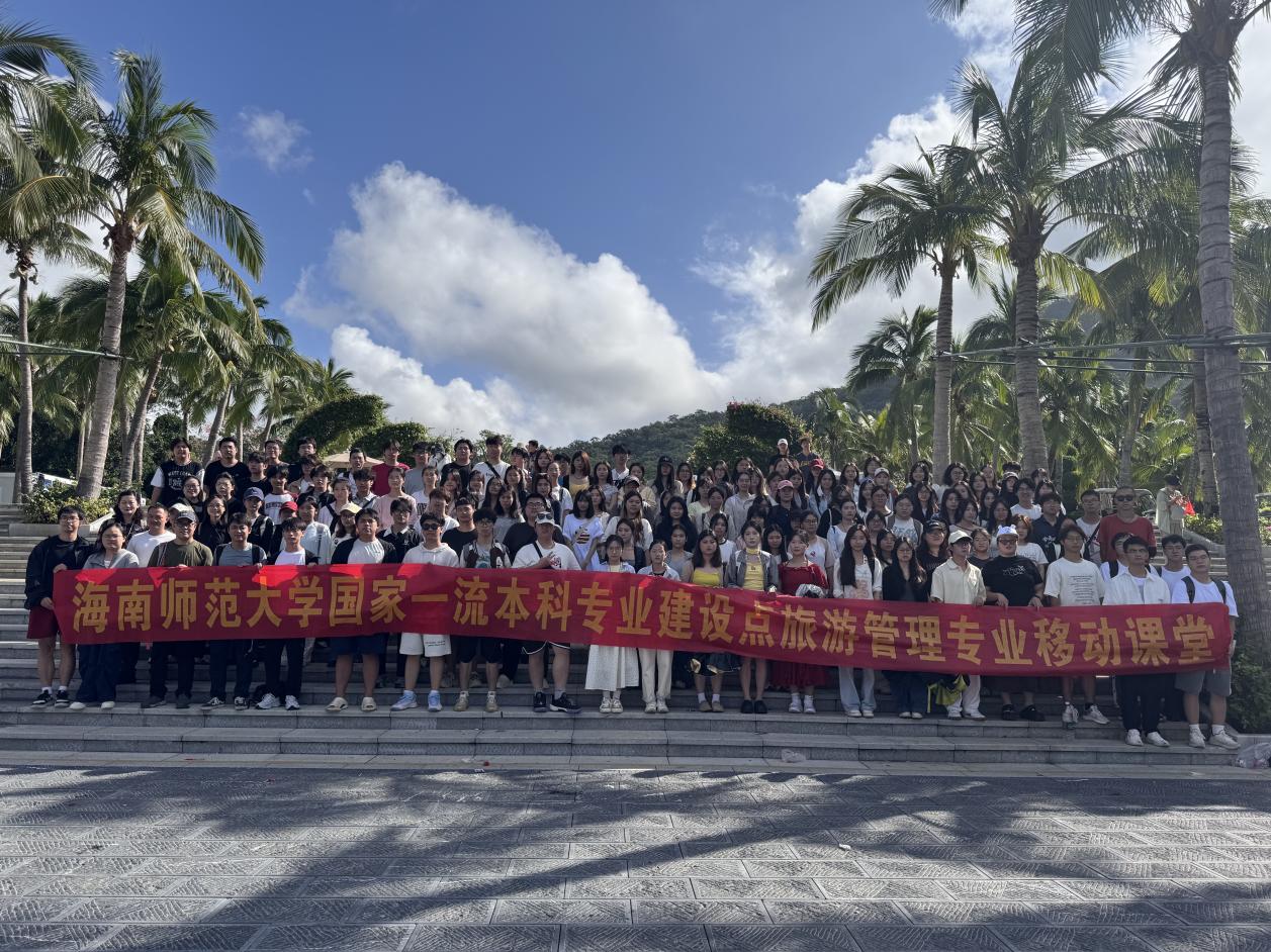 此外,同学们对三亚大小洞天、天涯海角及鹿回头等代表性景区进行了实地考察。调研深入聚焦于各景区的核心资源特色、现有产品开发模式与日常运营管理机制,并重点分析了文旅融合背景下新兴业态的发展现状与潜力。通过此次实践,同学们对旅游景区的多元化发展与创新路径建立了更为直观和系统的认知。