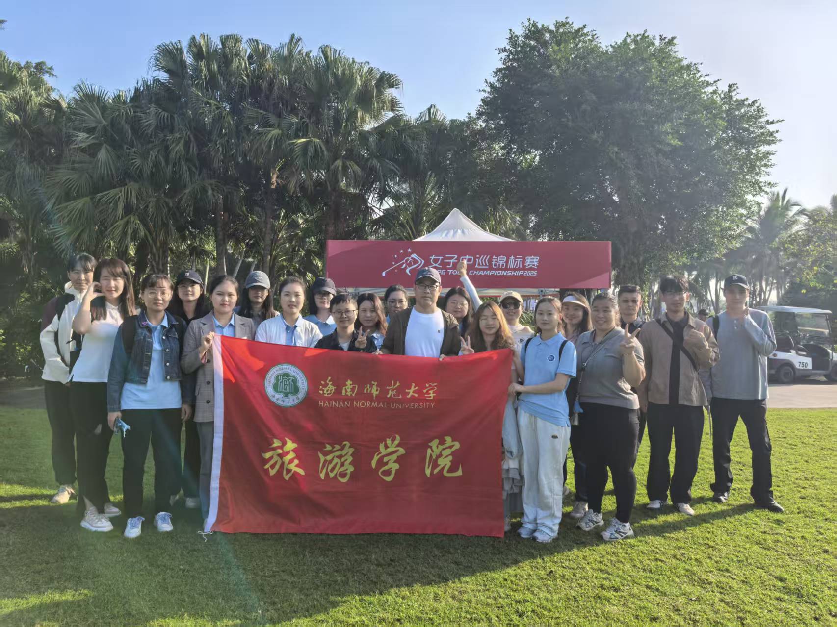 12月12日,应海口观澜湖旅游度假区邀请,学院党委副书记杨永智带领2025级MTA专业学生现场观摩2025年女子中巡锦标赛收官之战。本次观赛活动不仅让同学们沉浸式感受了高尔夫赛事的独特魅力,也让大家对大型度假区在赛事接待与运营方面的综合能力有了直观认识。