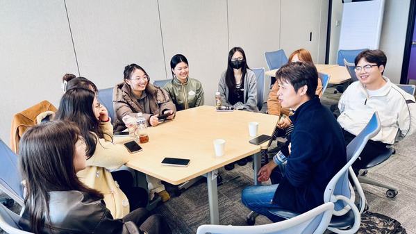 在与实习生的交流座谈会上,两位老师详细了解学生的工作内容、生活安排和实习中遇到的困难,同学们踊跃发言,分享实习期间的收获与感悟。在认真听取学生反馈的情况后,赵志峰针对同学们提出的问题与困惑进行了细致解答与指导。杨永智围绕就业形势与个人发展,引导学生树立务实就业观念,结合自身实际尽早明确职业定位,积极争取理想的工作机会。